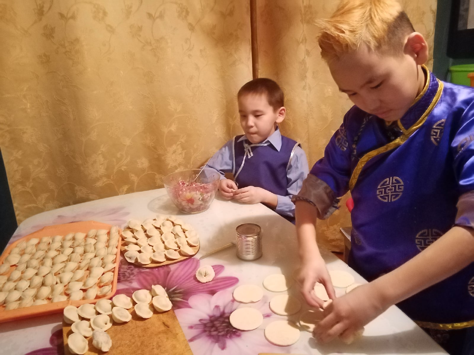Всей большой семьей - братья, сестры, дяди, тети - сообща лепили пельмени, буузы (манты), хуужууры (чебуреки), готовили лапшу. Здесь действует мудрая народная формула: чем больше еды и чем больше рук участвует в подготовке, тем благодатнее и сплоченнее будет наступающий год.